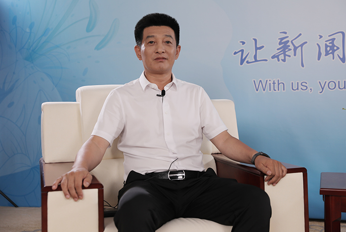 凌源市政府副市長張旭在訪談現場 張俊杰 攝