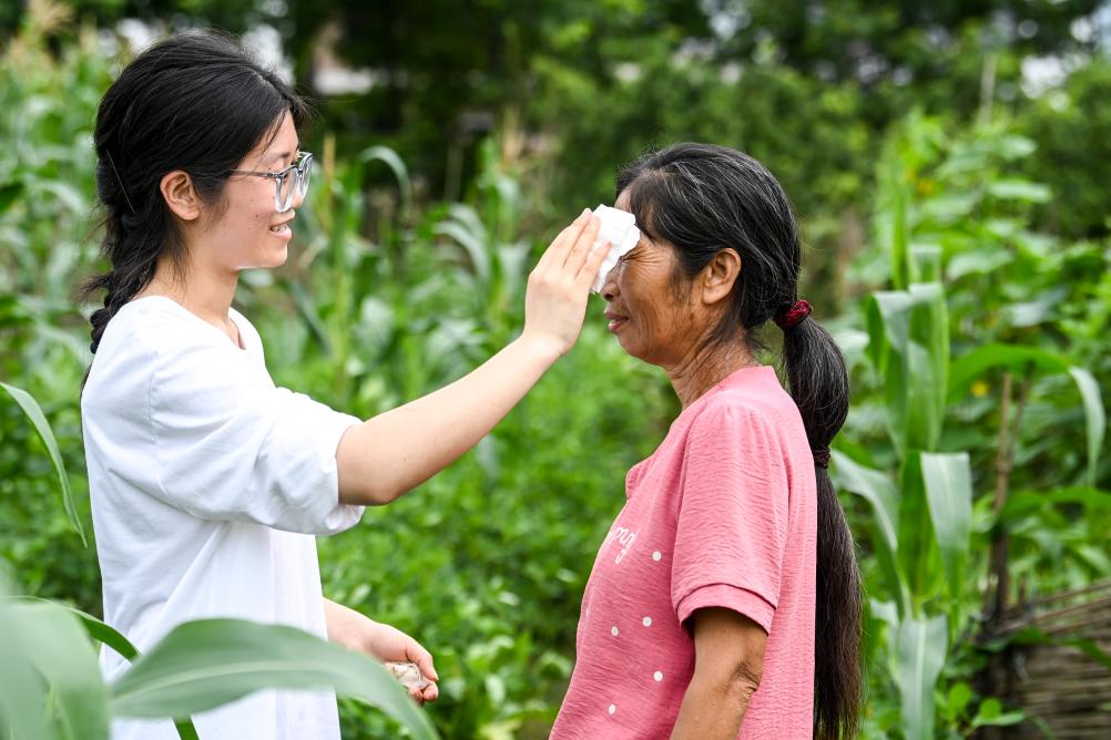 2025年6月的广西早已骄阳似火,闷热的空气很快让我的额头布满了汗珠。此时,田垄间劳作中的刘燕和妈妈也是满头大汗。两人弯腰的动作持续许久,手臂起落间,汗珠不断从发梢滴落。劳动一段时间后,刘燕直起腰,随后从口袋里拿出纸巾。她走到妈妈身旁,抬手将纸巾覆在妈妈的脸颊上,轻轻擦拭。母女之间简单的交流,此刻显得格外温馨,我随即按下了快门,记录下母女二人温暖互动的画面。