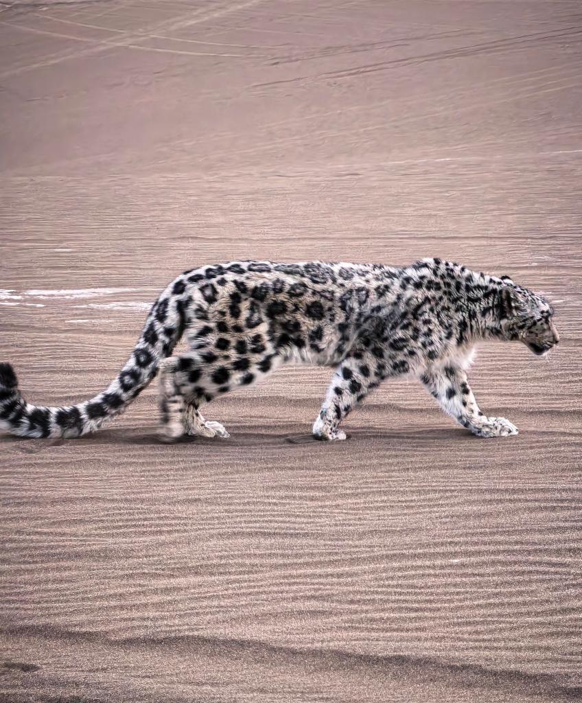 吐鲁番市林业和草原局局长刘丽媛介绍,雪豹通常栖息于高海拔山区,此次在沙漠出现极为罕见。结合周边地理环境,推测这只雪豹可能是在追逐猎物时迷路,误入沙漠。