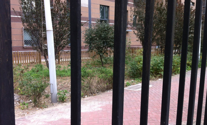 小區(qū)實現(xiàn)了人車分流,設(shè)有門禁,業(yè)主需要刷卡進入,門口有保安進行巡邏。不過還是有很多車輛亂停在小區(qū)北側(cè)的空地上,記者發(fā)現(xiàn)小區(qū)地下停車庫外墻壁的表面水泥已經(jīng)脫落。小區(qū)外圍柵欄墻皮也逐漸脫落。