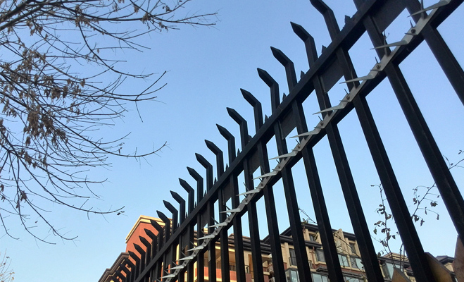 保安對小區(qū)進行24小時巡視,并配有防暴鋼叉等安防裝備。小區(qū)的圍墻柵欄設有金屬刺,具有較強的防攀爬功能。小區(qū)實現(xiàn)了嚴格的人車分流。