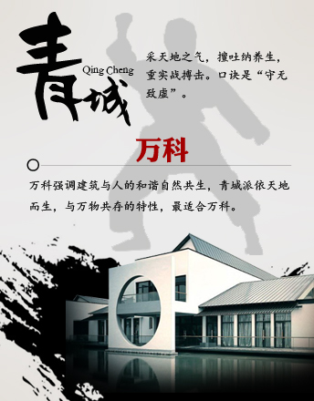 萬科 青城派 青城派擅長吐納養(yǎng)生,注重實(shí)戰(zhàn)搏擊。 萬科始終以穩(wěn)健規(guī)范的經(jīng)營作風(fēng)著稱。強(qiáng)調(diào)建筑與人的和諧自然共生,青城派與自然萬物共存的特性,最適合萬科不過。