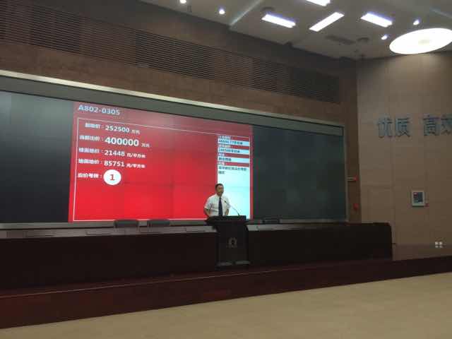 | 由于價(jià)格推至31億元時(shí),近20次叫價(jià),無(wú)人應(yīng)價(jià)。主持人將加價(jià)梯度降低至5000千萬(wàn)元。而 主持人已近8次叫價(jià),仍無(wú)人應(yīng)價(jià)。 |