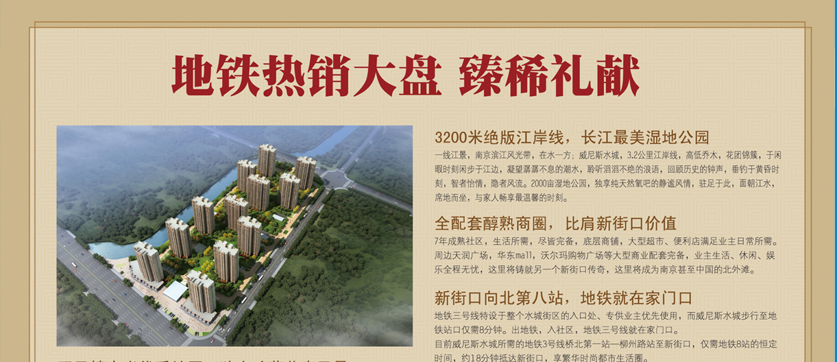 2014年南京迎來第二屆夏季青年奧林匹克運動會,與此同時過江地鐵3號線和10號線也將在2014年建成通車,雙城擁江已成格局,威尼斯水城450萬方地鐵濱江花園新城華東第一大盤。 …[詳細(xì)]