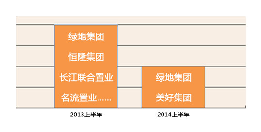 | 2013上半年,綠地集團、恒隆集團、長江聯合置業(yè)、名流置業(yè)(現更名為美好集團)等多家標桿房企積極拿地……