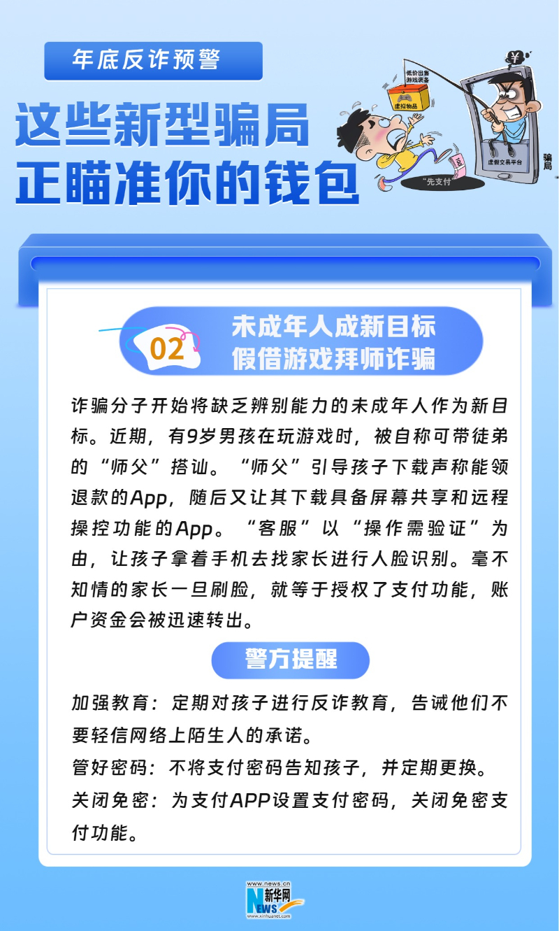 临近年底,新型诈骗活动频发。近期,全国多地警方已发布风险提示。为大家盘点了几类最新骗局及防范要点,帮助大家筑牢安全防线,守好“钱袋子”。