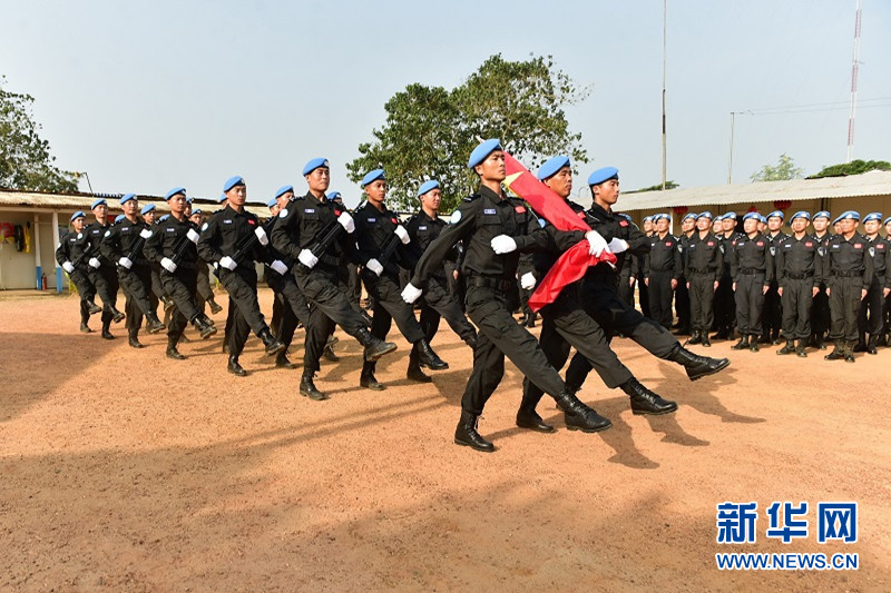 中國第三支赴利比里亞維和警察防暴隊舉行升旗儀式迎接2016年到來