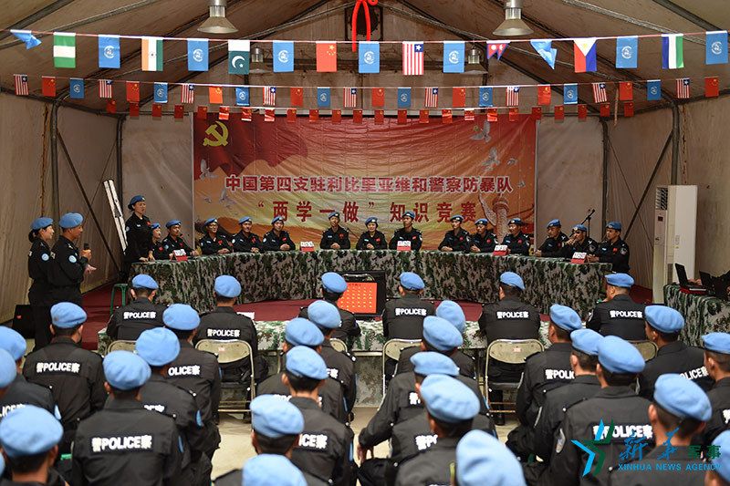 ????中國(guó)第四支駐利比里亞維和警察防暴隊(duì)日前舉行“兩學(xué)一做”學(xué)習(xí)教育知識(shí)競(jìng)賽。