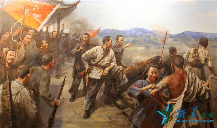 1927年11月14日,黃麻起義爆發(fā),圖為鄂東軍保衛(wèi)黃安油畫(huà)