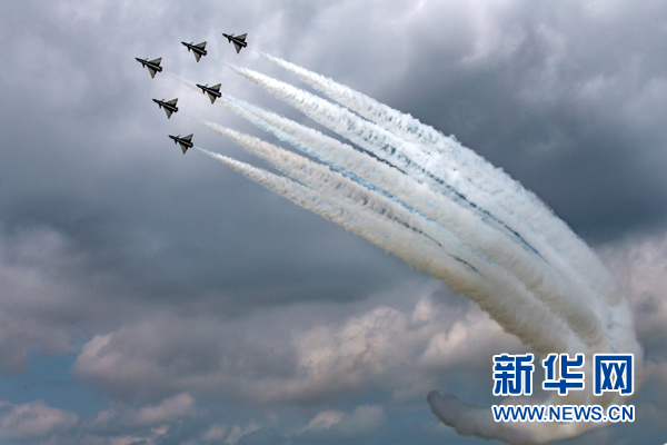 8月4日,中國(guó)空軍八一飛行表演隊(duì)亮相“航空飛鏢”靶場(chǎng)開(kāi)放日。新華社發(fā)(楊盼 攝)