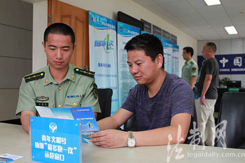 ????“您可以通過關(guān)注我們的微信公眾號(hào)‘紅色港灣’,及時(shí)了解證件辦理所需材料、注意事項(xiàng),避免由于手續(xù)不全多次往返。”穿山邊防檢查站執(zhí)勤業(yè)務(wù)一科教導(dǎo)員莫曉涵在對(duì)前來辦理證件的船員家屬介紹到。8月5日,浙江公安邊防總隊(duì)穿山邊防檢查站立足職能,結(jié)合實(shí)際,在一線執(zhí)勤窗口扎實(shí)開展了“最多跑一次”宣傳活動(dòng)。