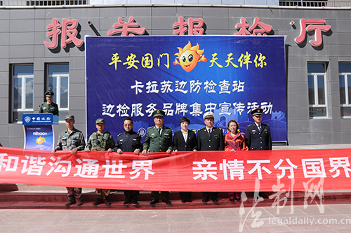 ????8月18日,在帕米爾高原慕士塔格峰下的新疆公安邊防總隊卡拉蘇邊檢站開展系列邊檢品牌集中宣傳推介活動,廣泛宣傳推廣“平安國門 天天伴你”服務(wù)品牌,讓更人關(guān)注中國邊檢,支持中國邊檢,提升中國邊檢服務(wù)品牌的社會影響力。