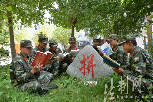 圖為官兵進(jìn)行晨讀