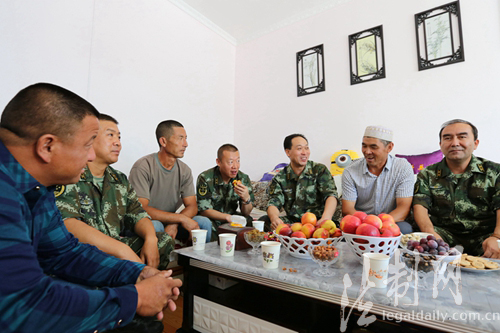 ????8月30日,在古爾邦節(jié)即將到來之際,新疆邊防總隊(duì)霍爾果斯邊檢帶著對(duì)民族親戚們的真誠(chéng)祝愿,來到霍爾果斯市莫乎爾鄉(xiāng)開干村,與結(jié)對(duì)親戚們共度佳節(jié)。
