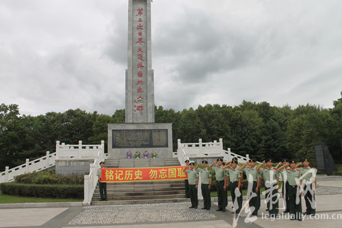 圖為邊防官兵在紀(jì)念碑前進(jìn)行“銘記歷史 勿忘國恥”宣誓紀(jì)念活動(dòng)