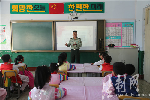 圖為邊防官兵走進(jìn)朝鮮族學(xué)校開展“勿忘國(guó)恥·振興中華”愛國(guó)主題教育活動(dòng)