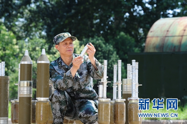 中國工程院院士、軍事科學(xué)院國防工程研究院研究員任輝啟檢查彈體作用情況(資料照片)。 新華社發(fā)(侯藝兵 攝)