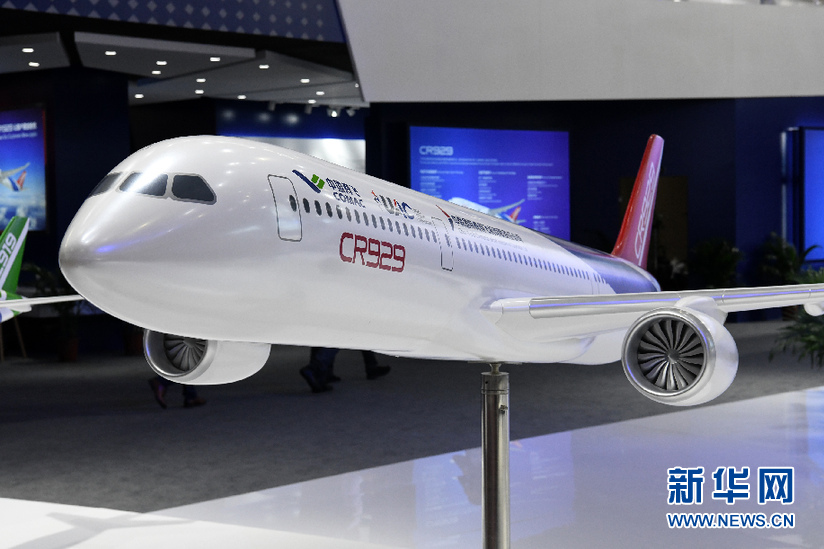 ??? 現(xiàn)場展示的CR929模型(11月7日攝)。 在第十二屆中國國際航空航天博覽會上,作為我國民用大飛機的研制主體,中國商用飛機有限責任公司展示了CR929遠程寬體客機1:1樣機,吸引了眾多觀眾參觀體驗。 新華社記者 梁旭 攝