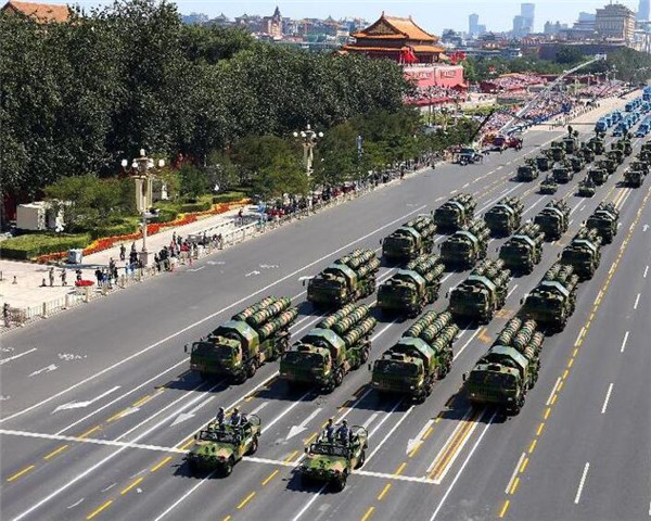 ????資料圖片:2015年9月3日,中國人民抗日戰(zhàn)爭暨世界反法西斯戰(zhàn)爭勝利70周年紀念大會在北京隆重舉行。這是裝備方隊通過天安門廣場。