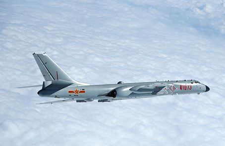 ????資料圖片:2017年11月23日,空軍轟-6K戰(zhàn)機(jī)前出第一島鏈開(kāi)展遠(yuǎn)洋訓(xùn)練。新華社發(fā)(王國(guó)松 攝)