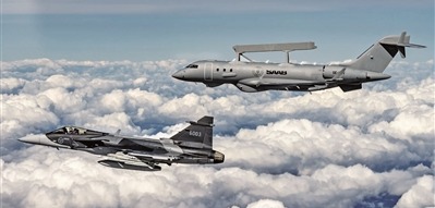 瑞典萨博公司研发的“全球眼”空中预警机(上)和“鹰狮”E战斗机。