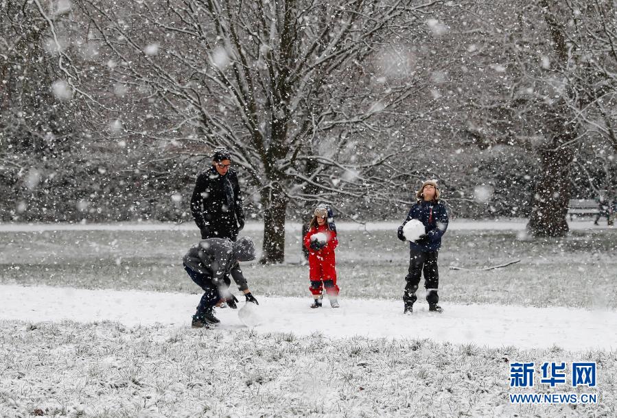 1月24日,人們?cè)谟?guó)倫敦的大雪中享受雪趣。新華社記者韓巖攝