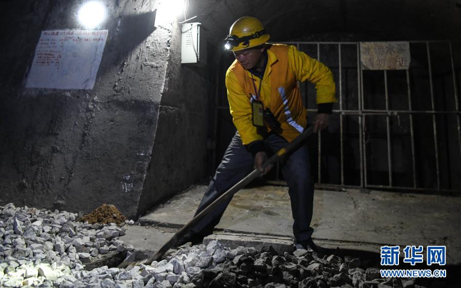 看守工廖成根在鄧山隧道內(nèi)用鐵鏟清除水溝內(nèi)的涌沙(1月30日攝)。