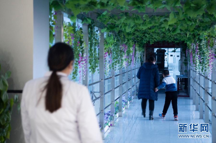 在哈爾濱博能中醫(yī)門診部,劉雨晴(左)在結束一天的康復訓練后目送腦癱兒童離開(2月2日攝)。