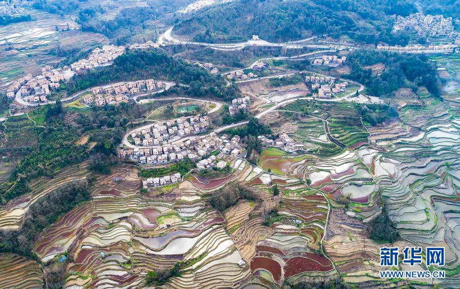 這是哈尼梯田景觀(2月24日攝,無(wú)人機(jī)照片)。