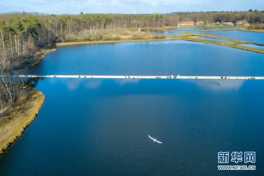 2月27日,人們在比利時小鎮(zhèn)波克萊克附近的“水中通道”中前行(無人機照片)。