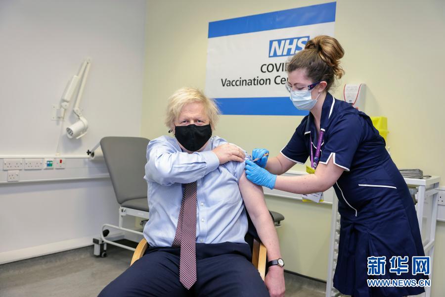 3月19日,英國(guó)首相約翰遜(左)在倫敦一所醫(yī)院接種新冠疫苗。新華社發(fā)(英國(guó)首相府供圖)