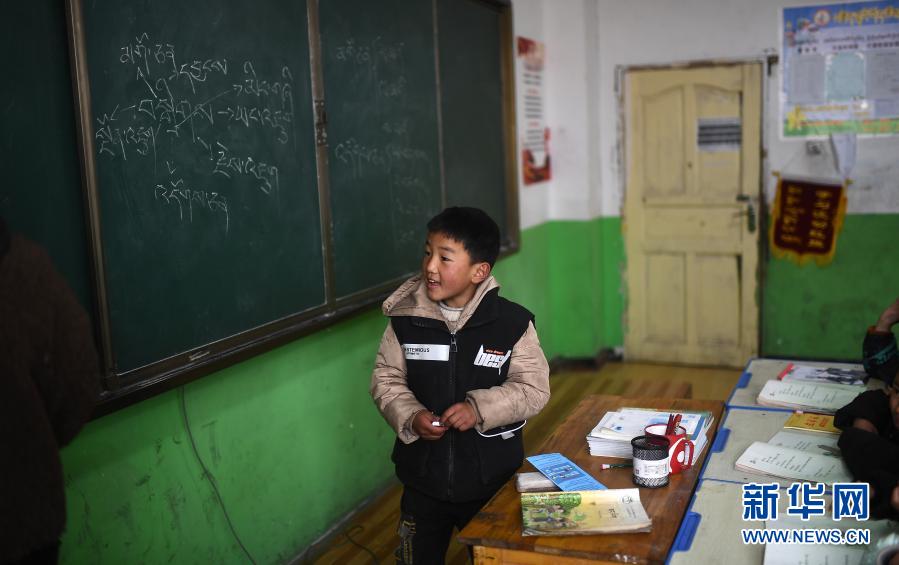3月16日,索加鄉(xiāng)寄宿小學學生尕瑪桑丁在藏語文課上。新華社記者 張宏祥 攝
