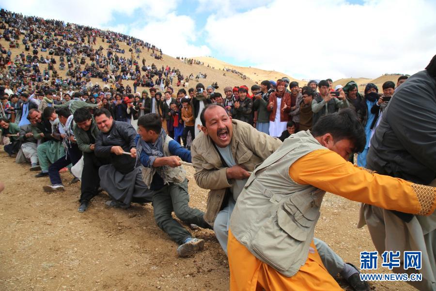 3月21日,人們?cè)诎⒏缓拱兔讚P(yáng)參加諾魯孜節(jié)拔河活動(dòng)。當(dāng)日,阿富汗民眾迎來(lái)諾魯孜節(jié)。新華社發(fā)(阿齊米 攝)