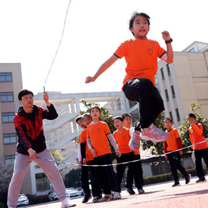 自2016年開始,安徽省合肥市瑤海區(qū)大通路小學(xué)新海校區(qū)將“花樣跳繩”運(yùn)動融入學(xué)校素質(zhì)教育實(shí)踐中,聘任專業(yè)老師,開設(shè)花樣跳繩課、組建花樣跳繩隊,并分年級編寫特色校本教材,開展全校范圍內(nèi)的花樣跳繩活動。通過該項(xiàng)運(yùn)動,為孩子們提供鍛煉展示的平臺,豐富學(xué)生體育活動內(nèi)容,增強(qiáng)學(xué)生體能體質(zhì)。
