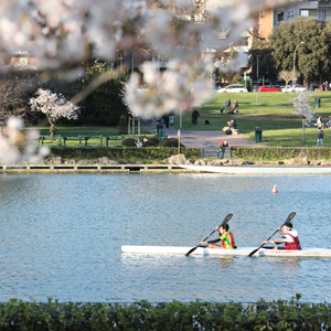3月24日,佩戴口罩出行的市民從意大利首都羅馬盛開(kāi)的櫻花樹(shù)下走過(guò)。