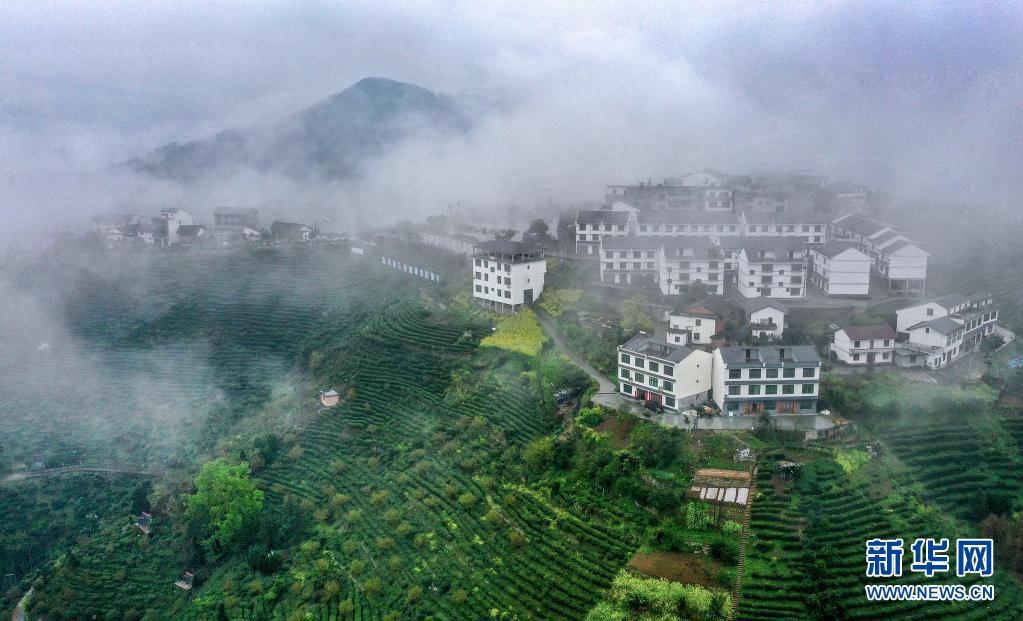 云霧中的流水鎮(zhèn)萬畝茶園(3月26日攝,無人機(jī)照片)。