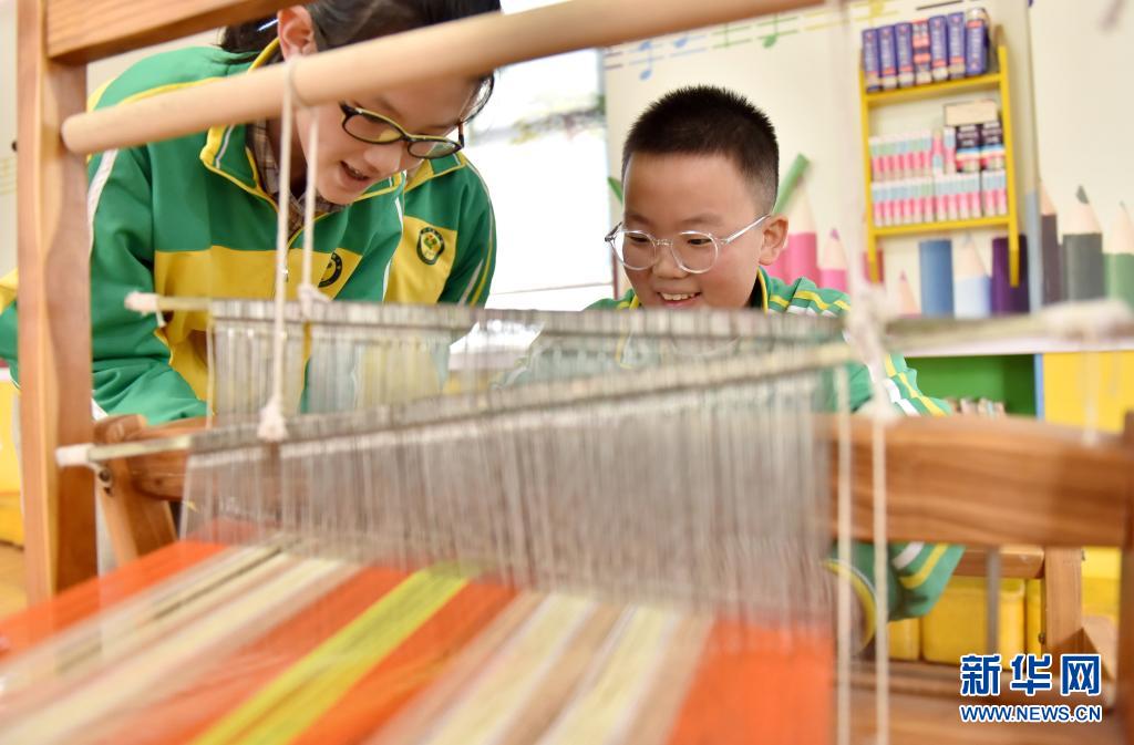 4月7日,威縣第四小學(xué)學(xué)生在體驗(yàn)老粗布紡織技藝。近年來(lái),河北省邢臺(tái)市威縣積極開(kāi)展“非遺傳承進(jìn)校園”活動(dòng),將當(dāng)?shù)靥厣沁z項(xiàng)目引入學(xué)校課堂,讓學(xué)生近距離感受民間傳統(tǒng)技藝的魅力,促進(jìn)非遺文化的保護(hù)和傳承。新華社記者 朱旭東 攝