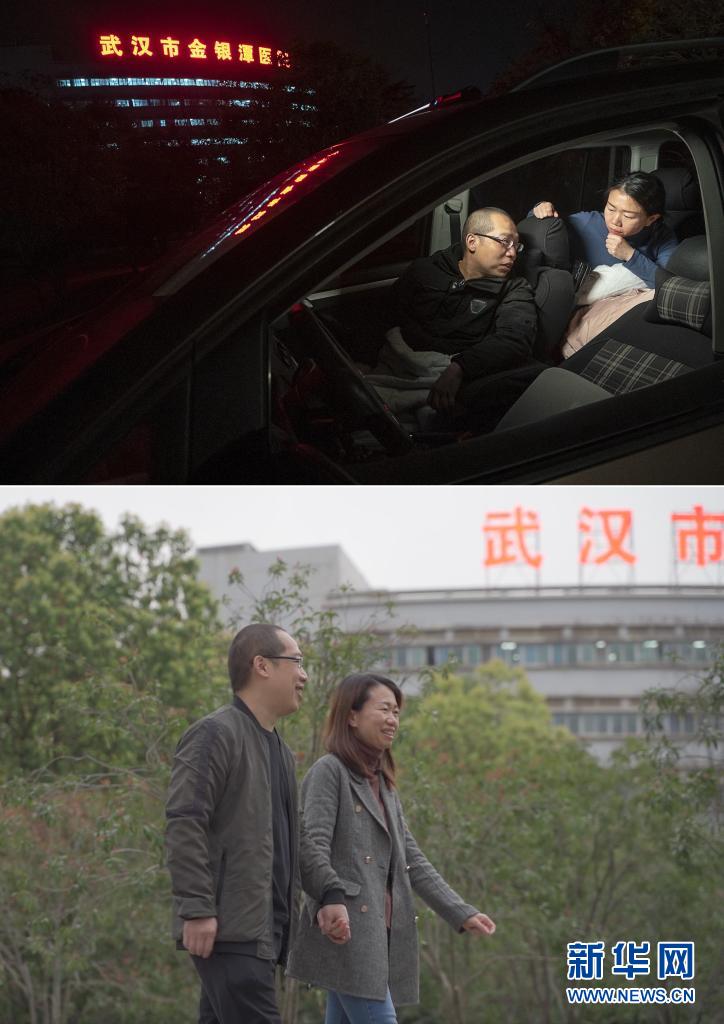 這是一張拼版照片,上圖為:2020年2月22日晚,武漢市金銀潭醫(yī)院的醫(yī)護(hù)夫妻涂盛錦(左)與曹珊在車內(nèi)聊天。從大年初一開始,兩人就住進(jìn)車?yán)铮瑸樵谝咔橹袚尵炔』?,?zhēng)分奪秒,以車為家;下圖為:3月23日,武漢市金銀潭醫(yī)院的醫(yī)護(hù)夫妻涂盛錦和曹珊在下班路上。新華社記者 熊琦 攝