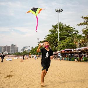4月9日,兒童在泰國芭堤雅海灘上放風(fēng)箏。
