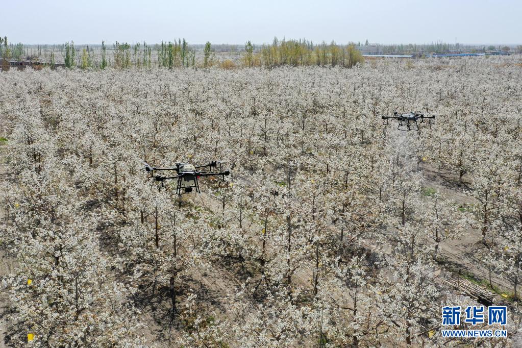 新華全媒+丨新疆:梨農(nóng)授粉用上無(wú)人機(jī)