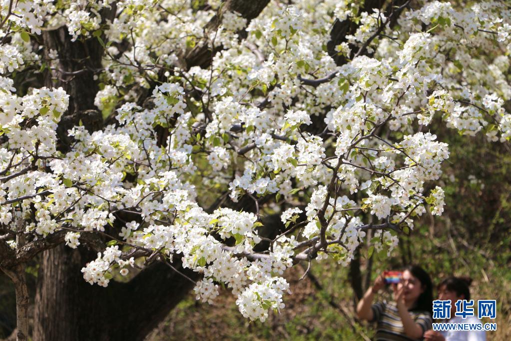 4月19日,游人在河北省承德縣新杖子鎮(zhèn)葦子峪村的梨園內(nèi)賞花。