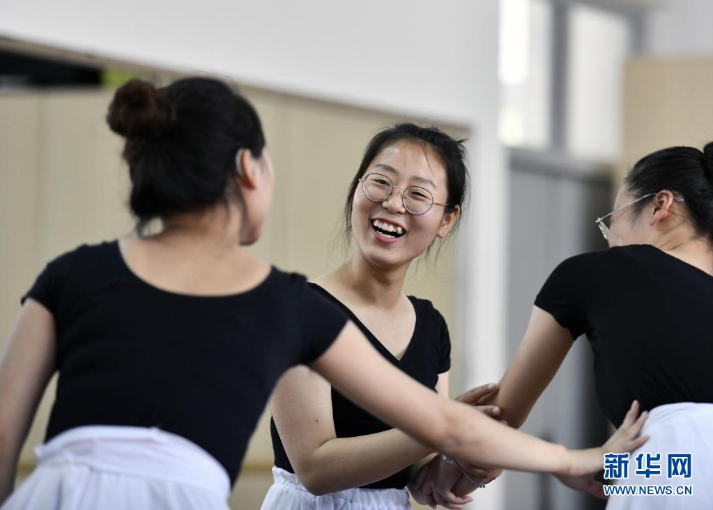 天津理工大學(xué)聾人工學(xué)院的舞蹈隊(duì)員們在排練期間交流(5月8日攝)。新華社記者 趙子碩 攝