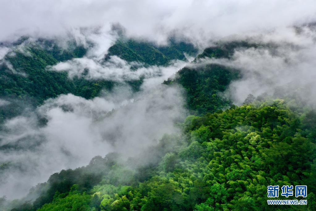 5月17日,武夷山國(guó)家公園桐木村附近群山云霧繚繞(無人機(jī)照片)。