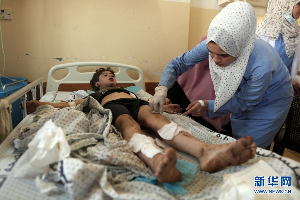 5月20日,一名因空襲受傷的巴勒斯坦兒童在加沙地帶城市汗尤尼斯的醫(yī)院中接受治療。