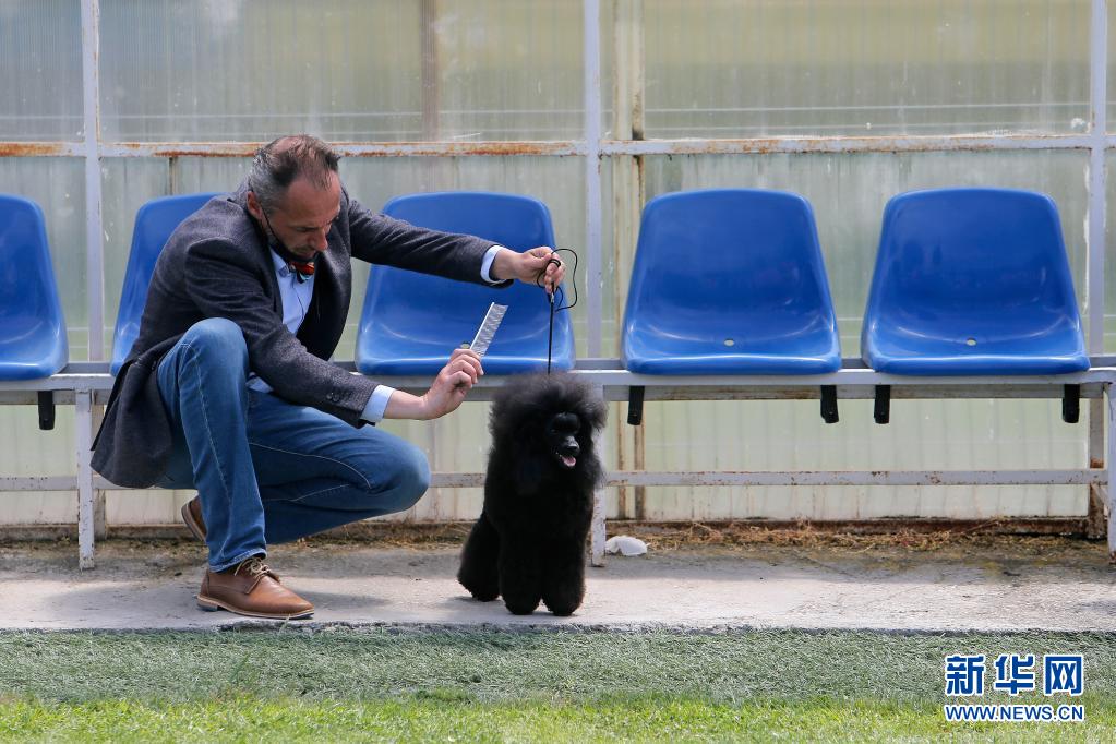 5月23日,一名男子在羅馬尼亞首都布加勒斯特為愛犬參加選美比賽做準備。新華社發(fā)(克里斯泰爾攝)