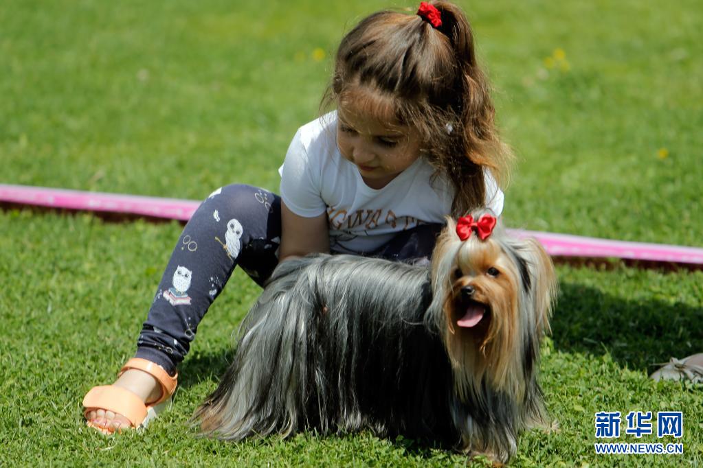 5月23日,一只約克夏梗犬在羅馬尼亞首都布加勒斯特參加選美比賽。新華社發(fā)(克里斯泰爾攝)