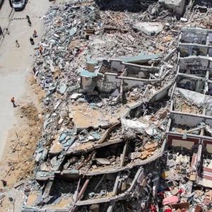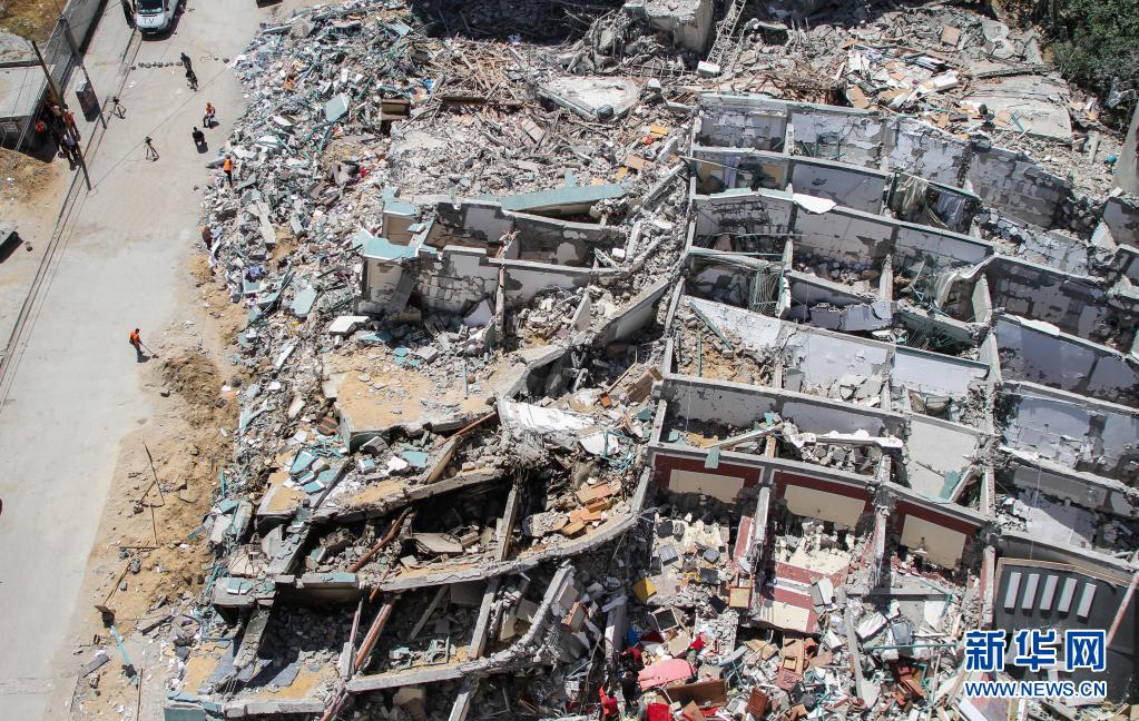 5月23日,巴勒斯坦人在加沙城走過遭以軍空襲損毀的賈拉塔。5月10日以來,以色列與加沙地帶武裝組織之間爆發(fā)嚴重沖突。20日晚,哈馬斯與以色列方面各自宣布,雙方已達成?;饏f(xié)議,停火從21日凌晨開始。新華社發(fā)(里澤克·阿卜杜勒·賈瓦德攝)