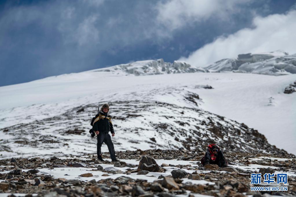 翻越一處險(xiǎn)坡后,別克米爾扎·圖爾達(dá)力(左)和同伴庫爾班巴依·努爾麥麥提在休息(5月15日攝)。新華社記者 胡虎虎 攝