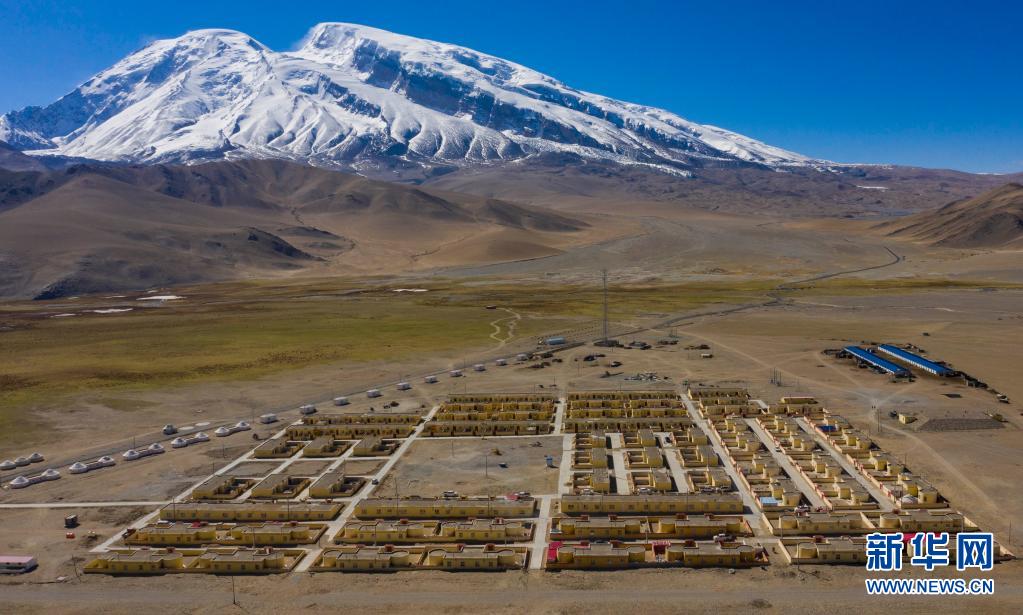 “冰山之父”慕士塔格峰腳下的新疆阿克陶縣布倫口鄉(xiāng)蘇巴什村三小隊(5月17日攝,無人機照片)。別克米爾扎·圖爾達(dá)力的家就在這個村莊。新華社記者 胡虎虎 攝