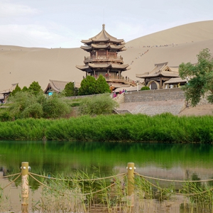 時下,位于甘肅省敦煌市的月牙泉碧波蕩漾,吸引不少游客前來觀光。